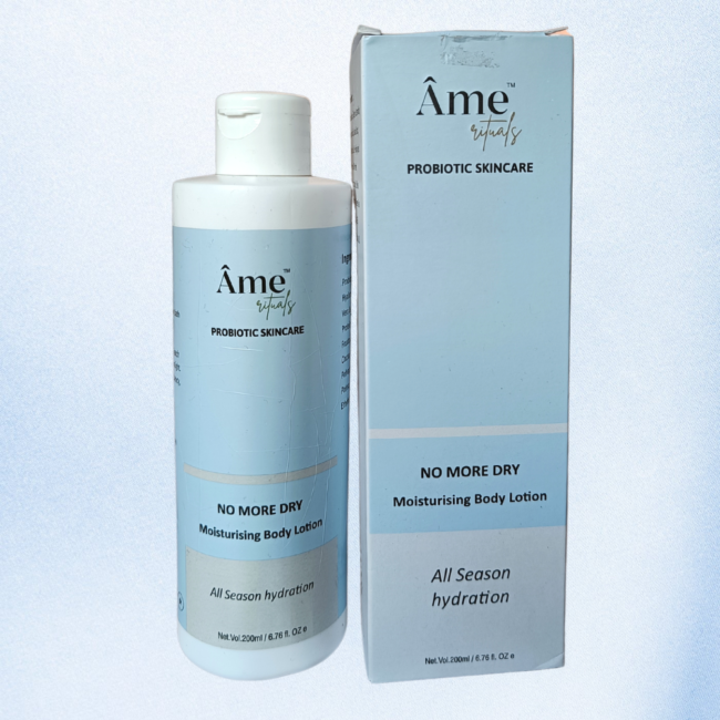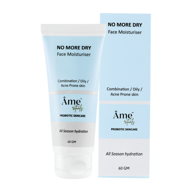 A reduction in these molecules due to various factors like ageing, UV radiation, dry, cold/hot weather, hormonal changes, harsh soaps and cosmetics leads to dryness of the skin. Thus making it look dull, rough, flaky with more visible lines and wrinkles. Hence, a daily dose of hydration becomes an essential part of our skin care regime.The AME Rituals No More Dry range is not just a routine moisturizing one, it also contains a probiotic – Pro Biobalance, which gives it the added advantage of stabilizing the natural microbiome of the skin.