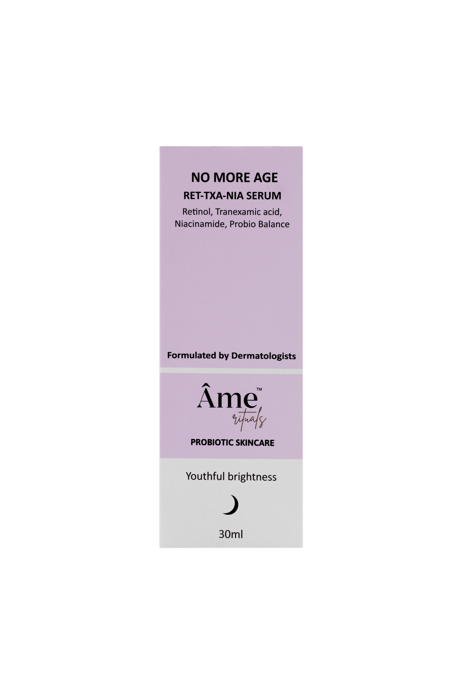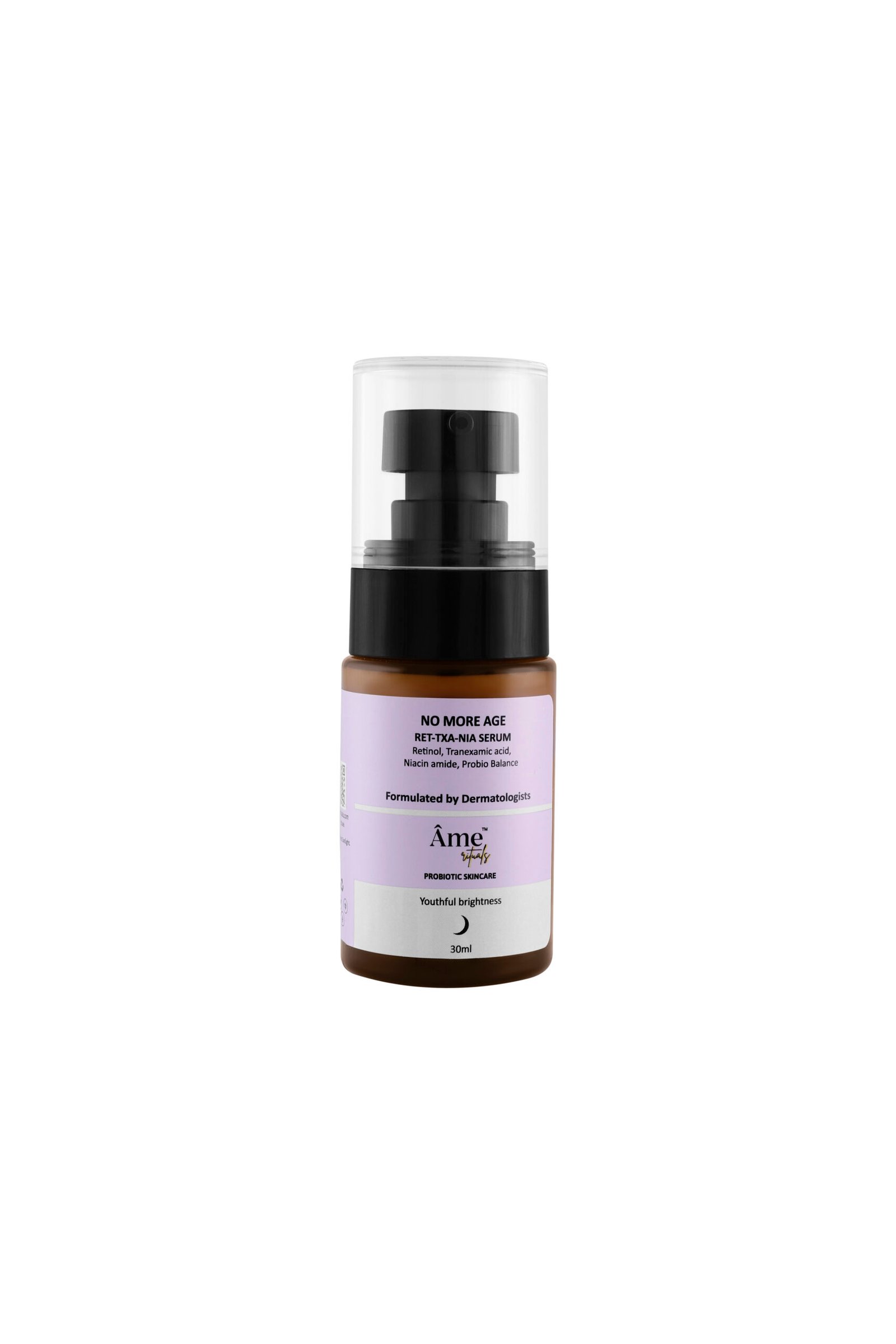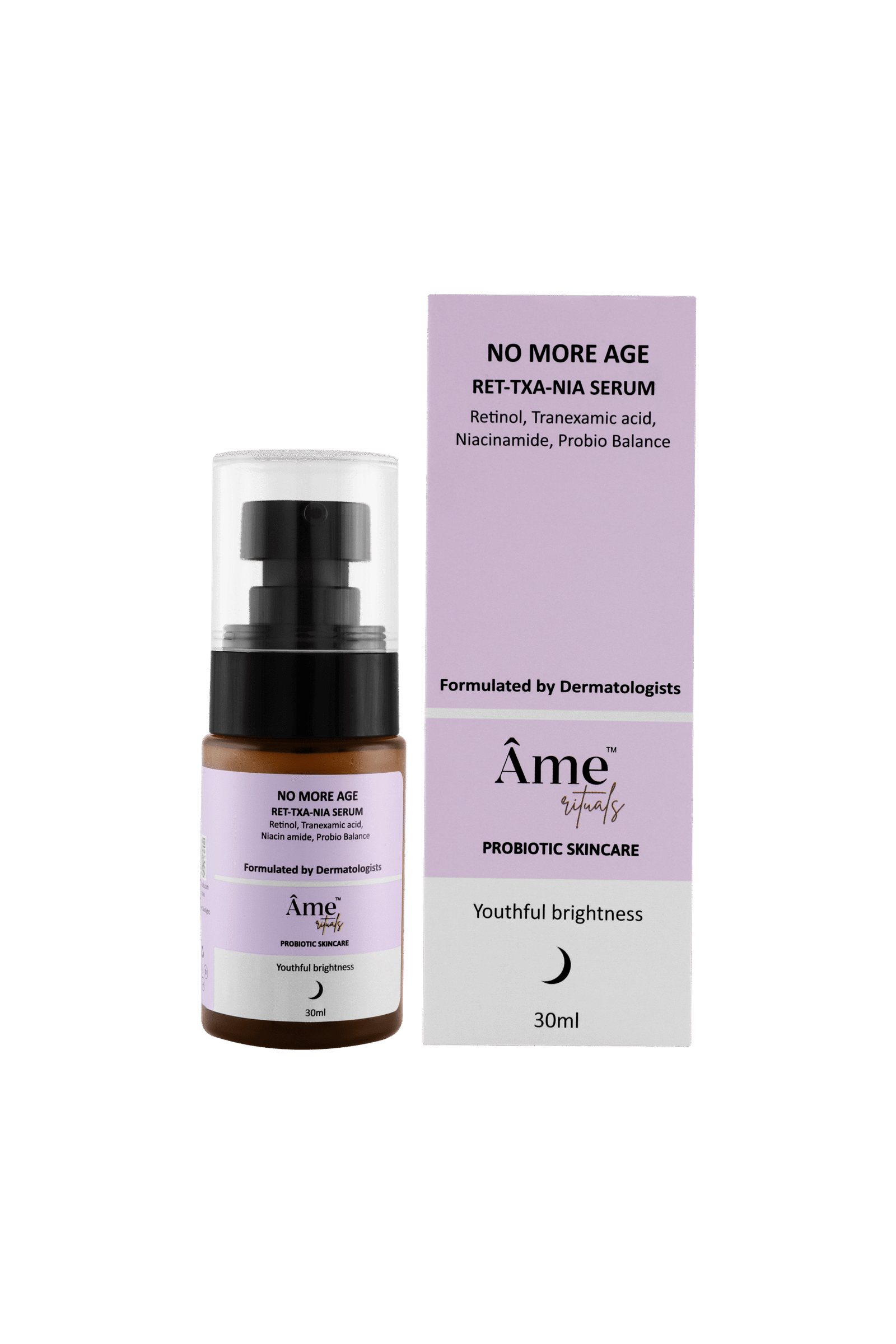 No More Age RET-TXA-NIA serum is a unique combination of two powerful actives, formulated to provide effective exfoliation, enhanced skin cell turnover, new collagen formation and reduced melanin synthesis.