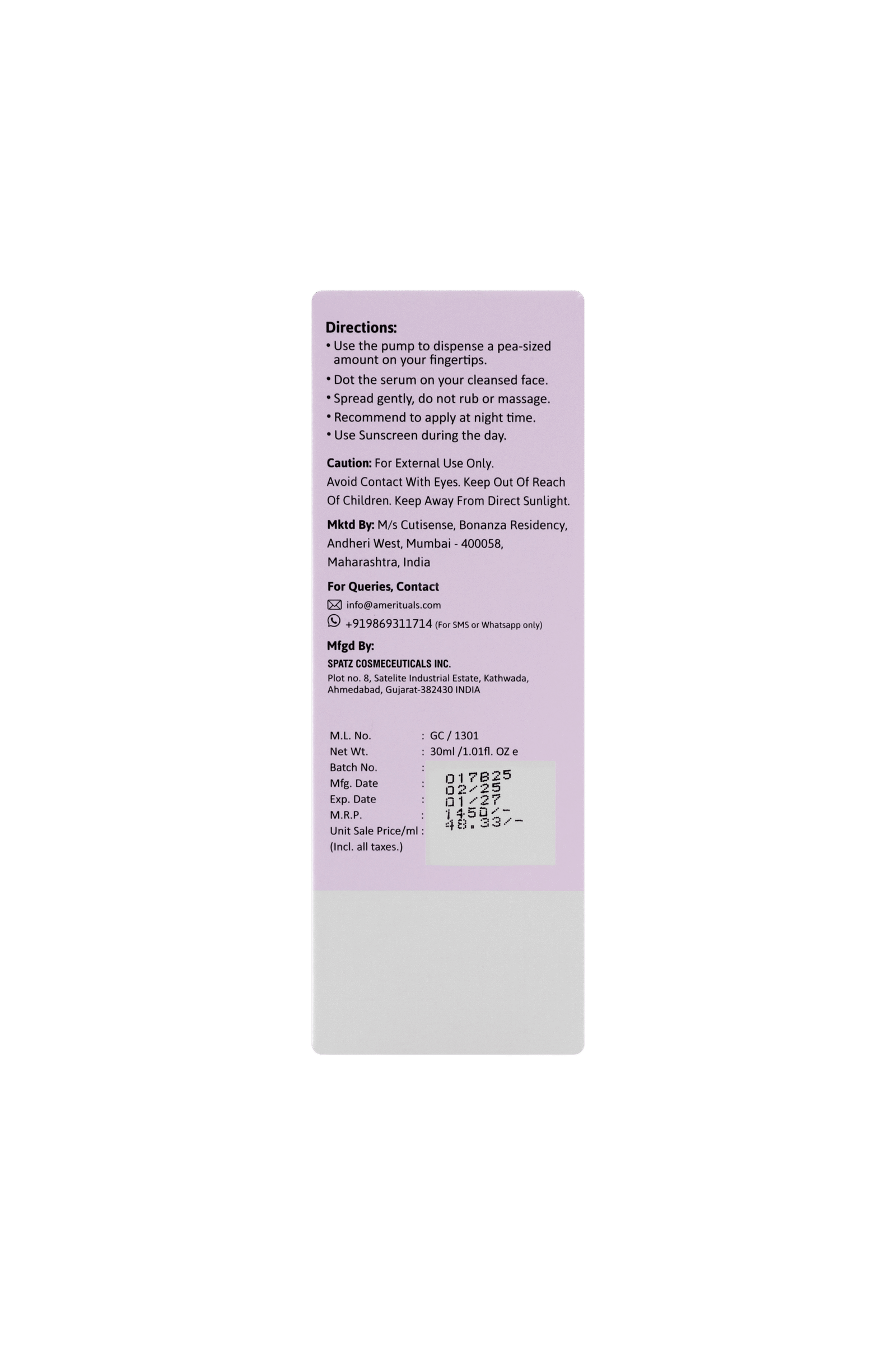 It should be used preferably at night. A moisturiser should be used once or twice a day to counter dryness due to the actives. Sunscreen use is mandatory in the daytime.